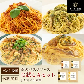 商品の紹介 森のパスタソース お試しセット B 【1人前×4種類】 明太子 ボロネーゼ 鶏肉クリーム カルボナーラ メール便配送 | きのこ屋特製パスタソース きのこパスタ レトルト 国産きのこ ギフト 御歳暮 スパゲテ...